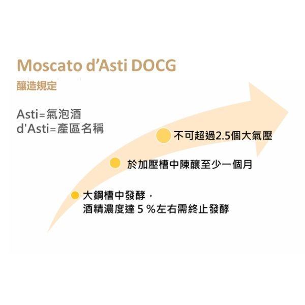 Moscato d'Asti 是典型「低酒精、高香氣、微氣泡」的甜白酒代表,其工藝的關鍵在於「保留新鮮度與原生果味」,並用現代技術達到穩定的品質與口感,是甜酒愛好者與新手入門的首選。